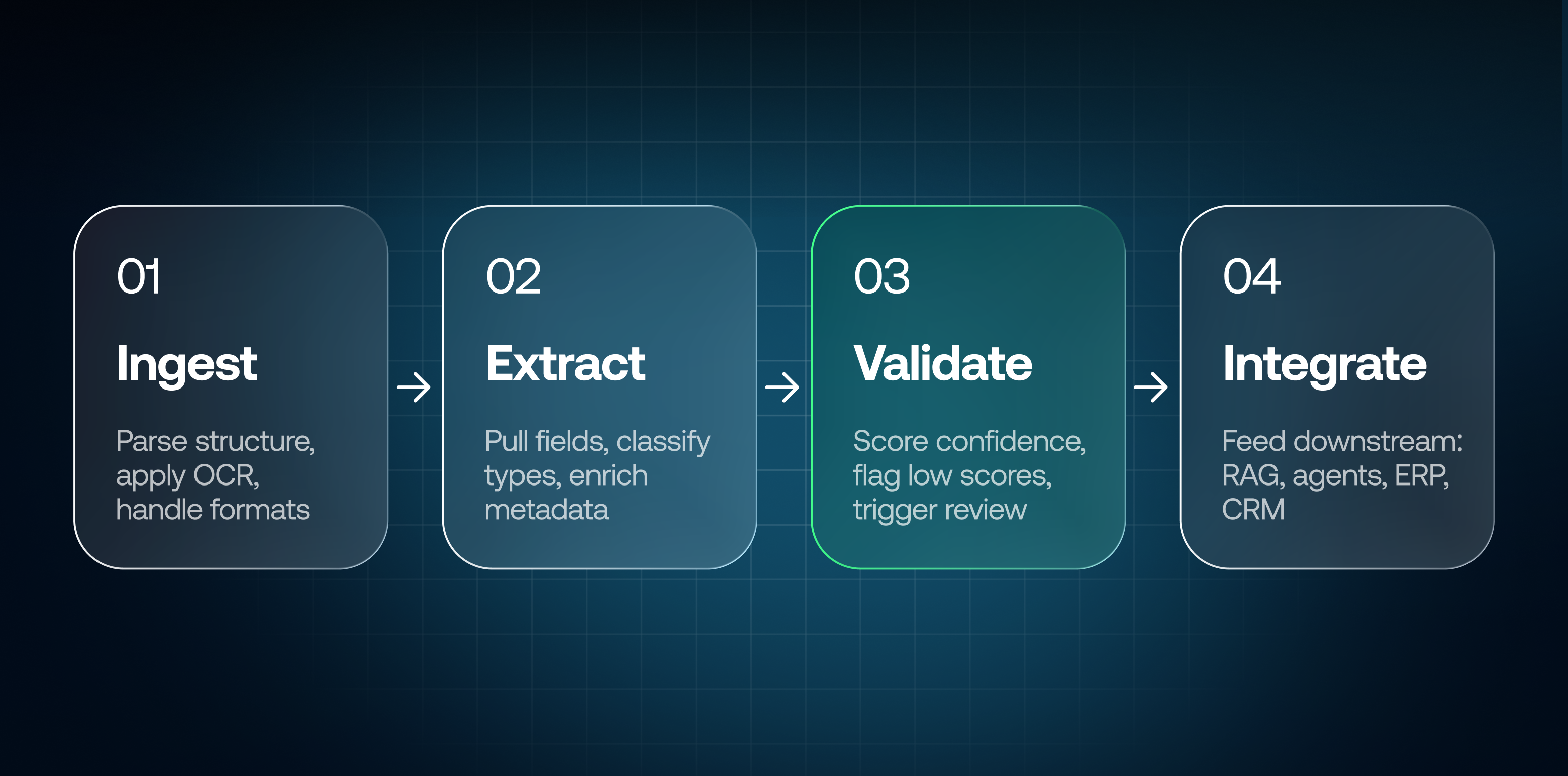 The first two stages (ingestion and extraction) are where most platforms compete on features. But stages three and four are where production systems succeed or fail.